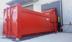 Die PRESTO Presscontainer kommen überall dort zum Einsatz, wo größere Mengen an Wertstoffen, Restmüll oder Hausmüll ähnlicher Gewerbeabfall anfällt. Sie zeichnen sich besonders dadurch aus, dass die Presseinrichtung fest mit dem Behälter verbunden ist. Die Verdichtung des Materials erfolgt durch eine horizontal gelagerte Pressplatte, die elektrohydraulisch angetrieben wird.
